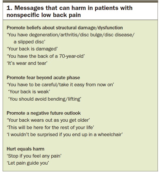 What a fantastic article! This is relevant to every conversation with every patient. I think it can be even more subtle than words. Even the sharp inhalation of breath, alarmist facial expression, ooos and aargh’s can all reinforce negative beliefs.