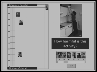 I decided to perform a Photograph of Daily Activities (PHODA) and adapted it to suit activities related to the wrist as that had presented with an aversion to her wrist and was also avoidant of pain. For info on PHODA see here. Her psychometric scoring also showed high levels of fear of movement (TSK), low self-efficacy (PSEQ) and high scores on the magnification subscale of the Pain Catastrophising Scale (PCS).