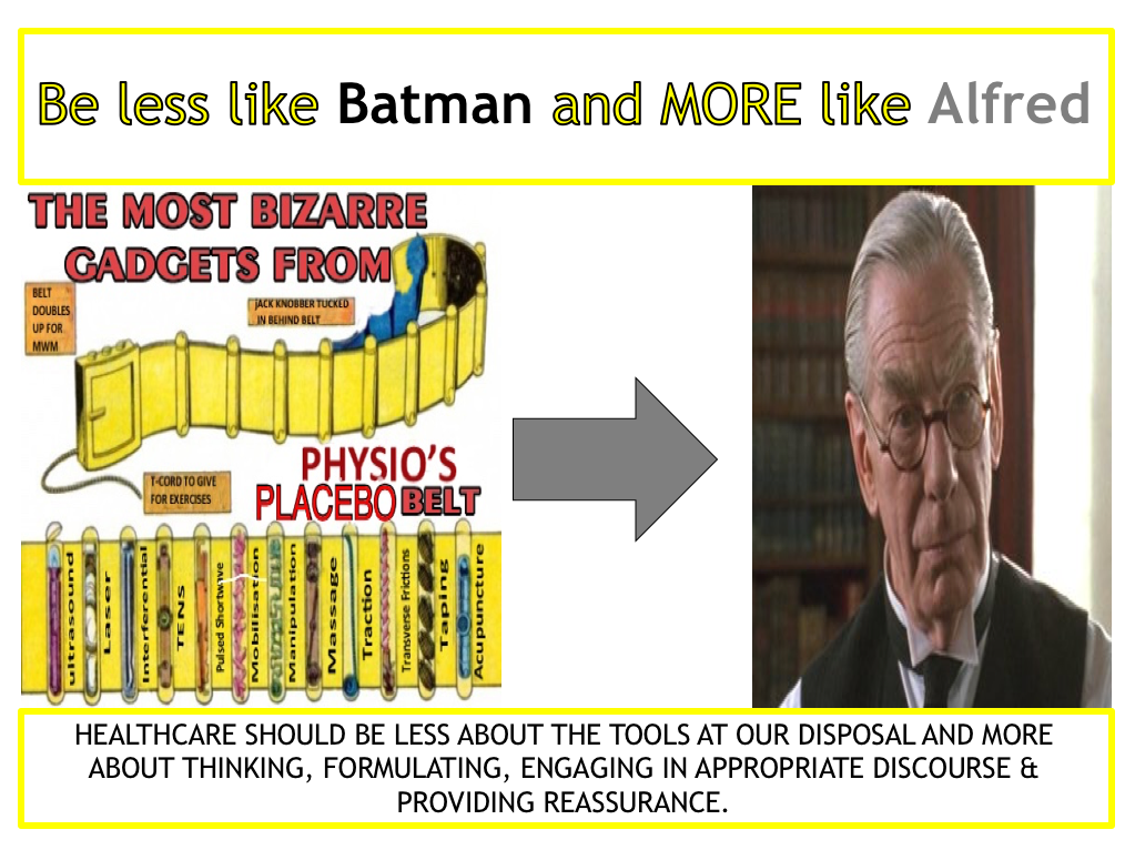 There’s that popular saying different strokes for different folks. So, in essence we should consider being less like batman using our utility (placebo) belt at whatever cost and think and formulate more like Batman’s rationale Butler – Alfred.